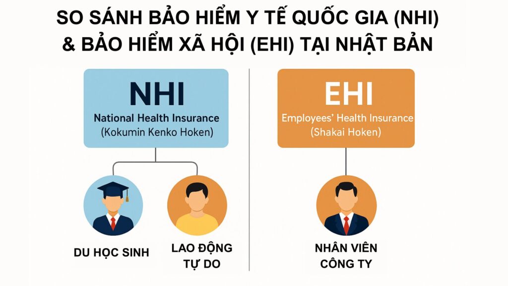 - Người lao động tự do, người làm thêm (baito), kinh doanh cá nhân, làm tại công ty không đủ điều kiện cấp EHI → tham gia NHI